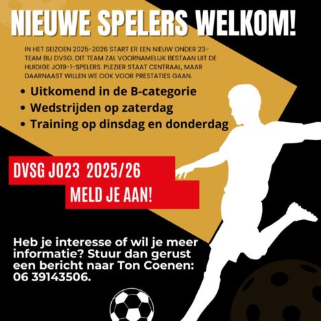 Ben jij klaar voor een nieuwe uitdaging? In het seizoen 2025-2026 start DVSG met een gloednieuw onder 23-team! 💪 🔸 Speel in de B-categorie🔸 Wedstrijden op zaterdag🔸 Training op dinsdag …